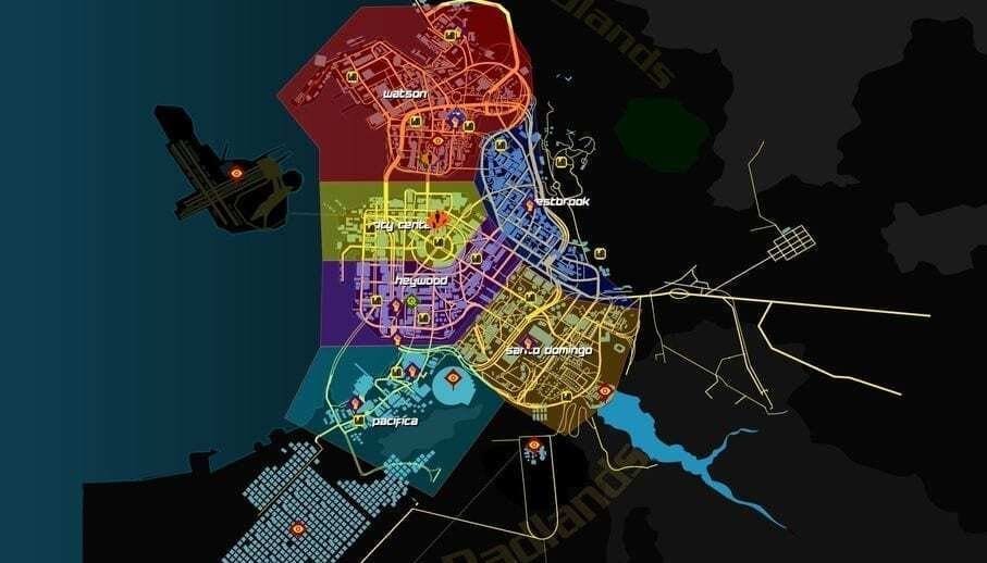 Bu sızıntılardan biri ise 4chan’de paylaşıldı. Paylaşılan görselde Badlands isimli geniş bölge yok, ancak Night City’i gayet açık bir şekilde gösteriyor.