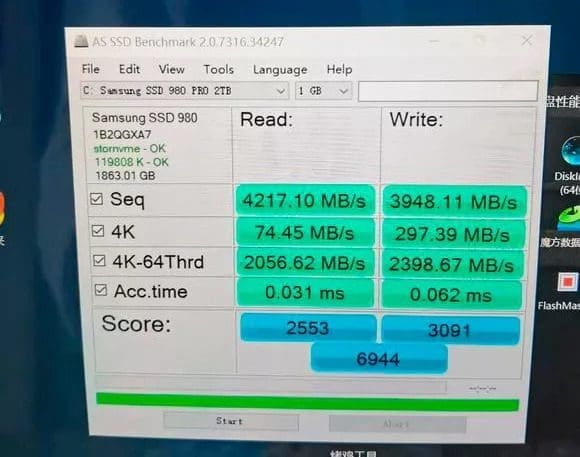 Sahte 980 Pro ile orijinalinin arasındaki farklardan anlayabileceğimiz üzere performansları arasında fark olacak. Kullanıcının yayımladığı CrystalDiskMark’ta ardışık okuma-yazma testlerine göre sahte SSD okumada yaklaşık 4.8GBps, yazmada ise 4.5GBps’lik bir performans ortaya koydu. AS SSD Benchmark‘ta ise 4.3GBps okuma ve 3.9GBps yazma hızları sağladı. Bu değerler orijinal 980 Pro’nun sağladığı 7GBps okuma ile 5GBps yazma vaadinin çok altında kalıyor. Ayrıca sahte SSD Samsung Magician‘ın yanında CrystalDiskInfo’yu da kandırabiliyor.